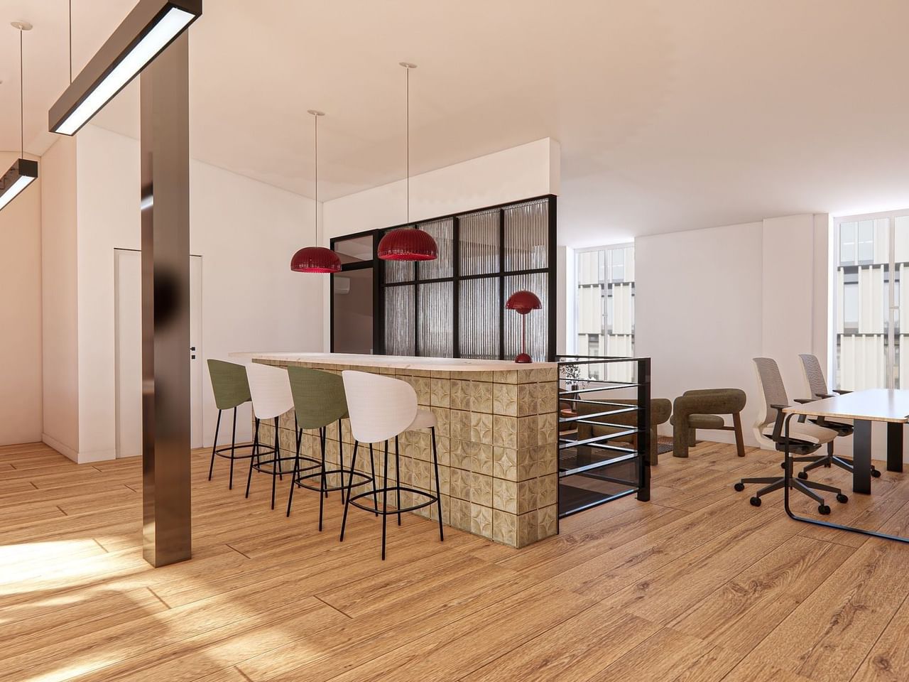 An attractive fully-equipped kitchen and dining area complete the setting, offering your employees a truly comfortable working environment.