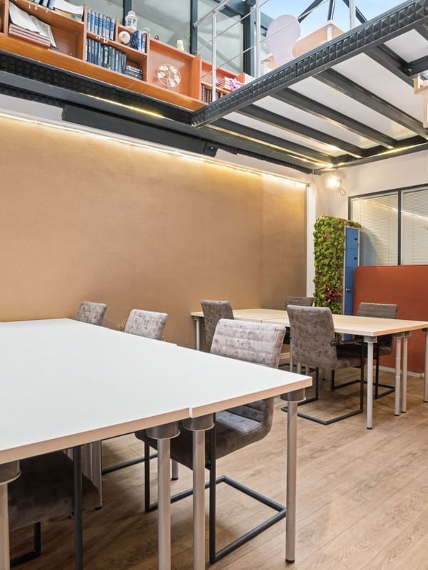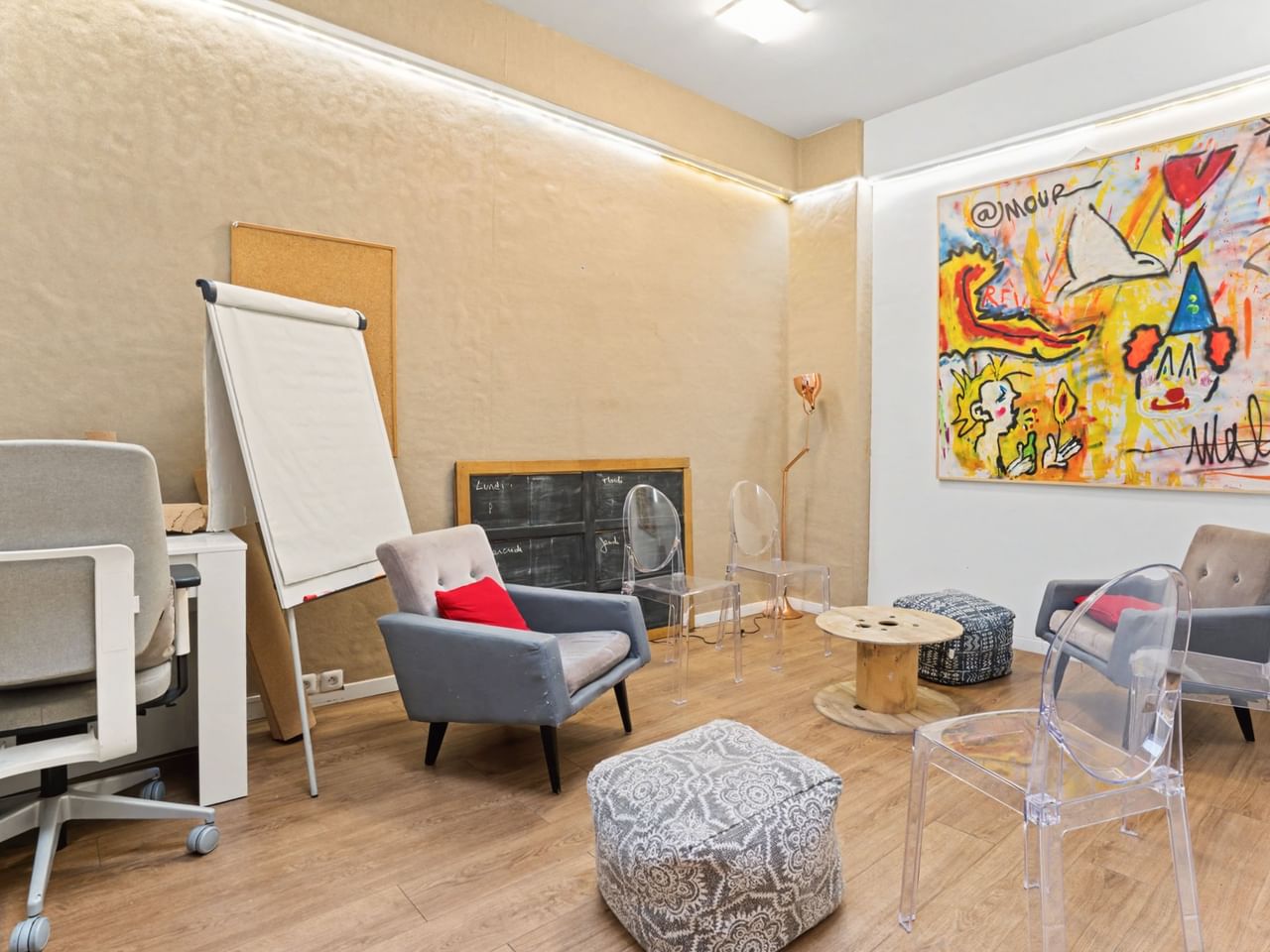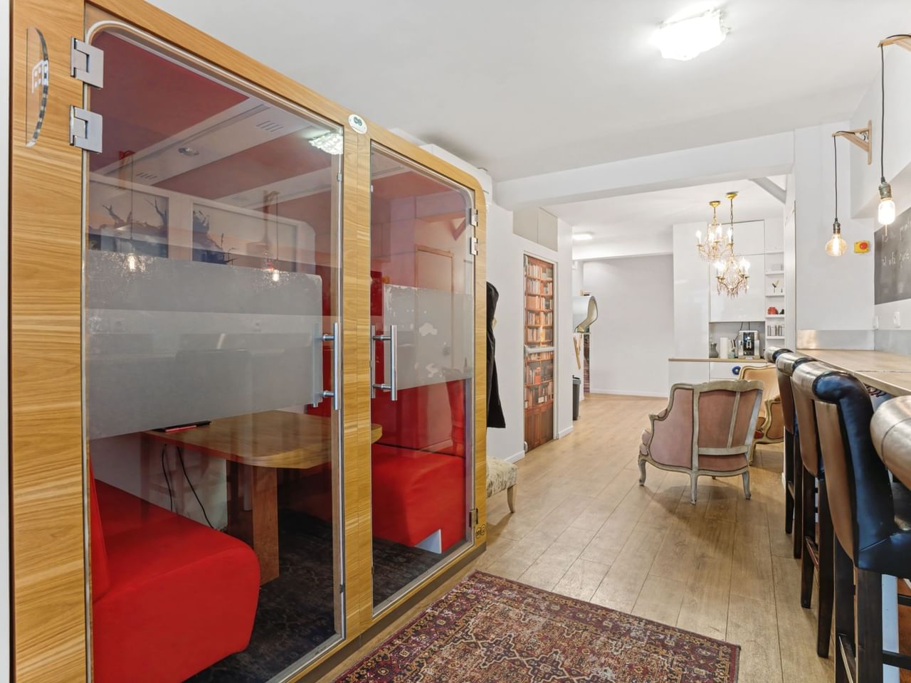 Located on the first floor, this 150 m2 private space offers a capacity of around 20 workstations, with two phonebooths for calls, a private kitchen and 24/7 access, ideal for a team looking for a functional, independent office.