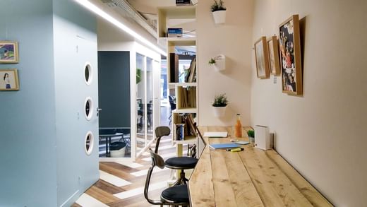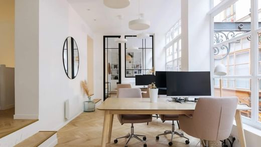 Le Bureau has two fully equipped kitchens, allowing you to prepare your meals on site. Moreover, a phone box is at your disposal for your confidential calls. You can also take advantage of a terrace to get some fresh air and admire the charm of the historic Parisian passage in which All Day is located.