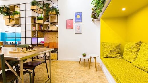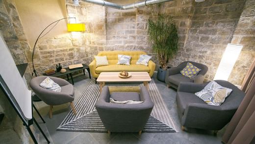 The layout of the space includes two spacious open spaces, ideal for team or solo work. A meeting room that can accommodate up to 5 people is also available for your meetings and brainstorming sessions. For a well-deserved break, take advantage of the large relaxation area fitted out with comfort and conviviality.