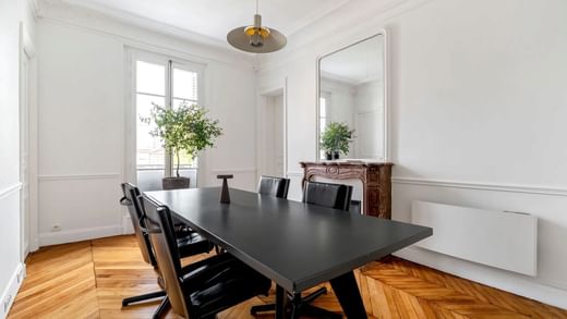 A community of independent creatives in a beautiful apartment with woodwork, parquet and moldings. They are all driven by the values of decompartmentalization, benevolence, authenticity and commitment, and one vision: to be together and do together.