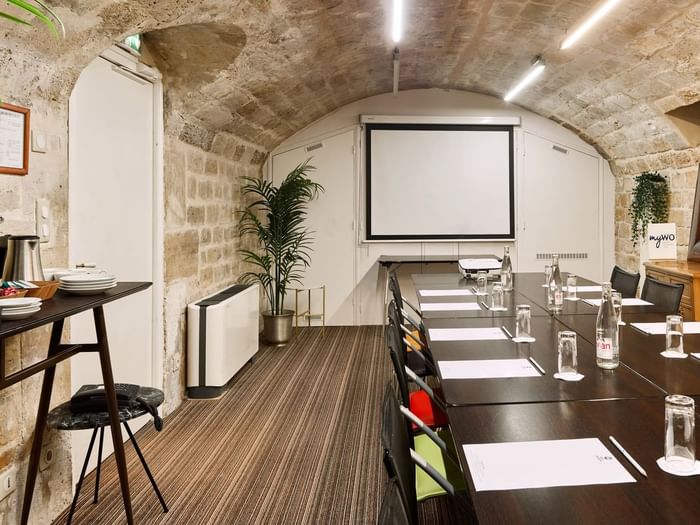 You can opt for a designer meeting room with modern equipment and sophisticated furnishings. When you rent a modern meeting room, for example, it will be equipped with several wall-mounted and mobile screens, a very high-speed internet connection, a projector, walkman microphones, etc.