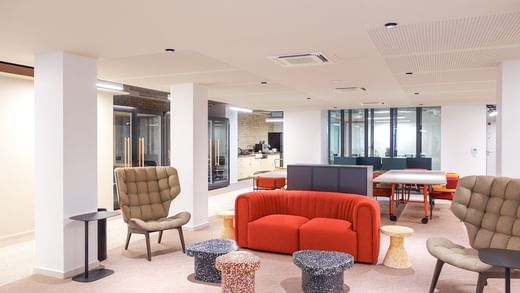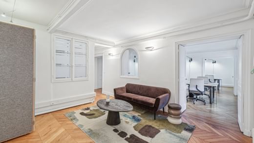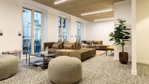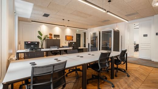 Located close to the Saint-Lazare train station, in a luxury Haussmann building, this 40-station private space on the 6th floor includes three meeting rooms, a kitchenette and a relaxation area.