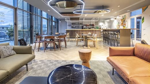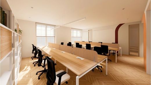 This bright, inspiring environment can accommodate up to 30 fixed workstations, complemented by 2 meeting rooms, 2 phonebooths and a kitchen.