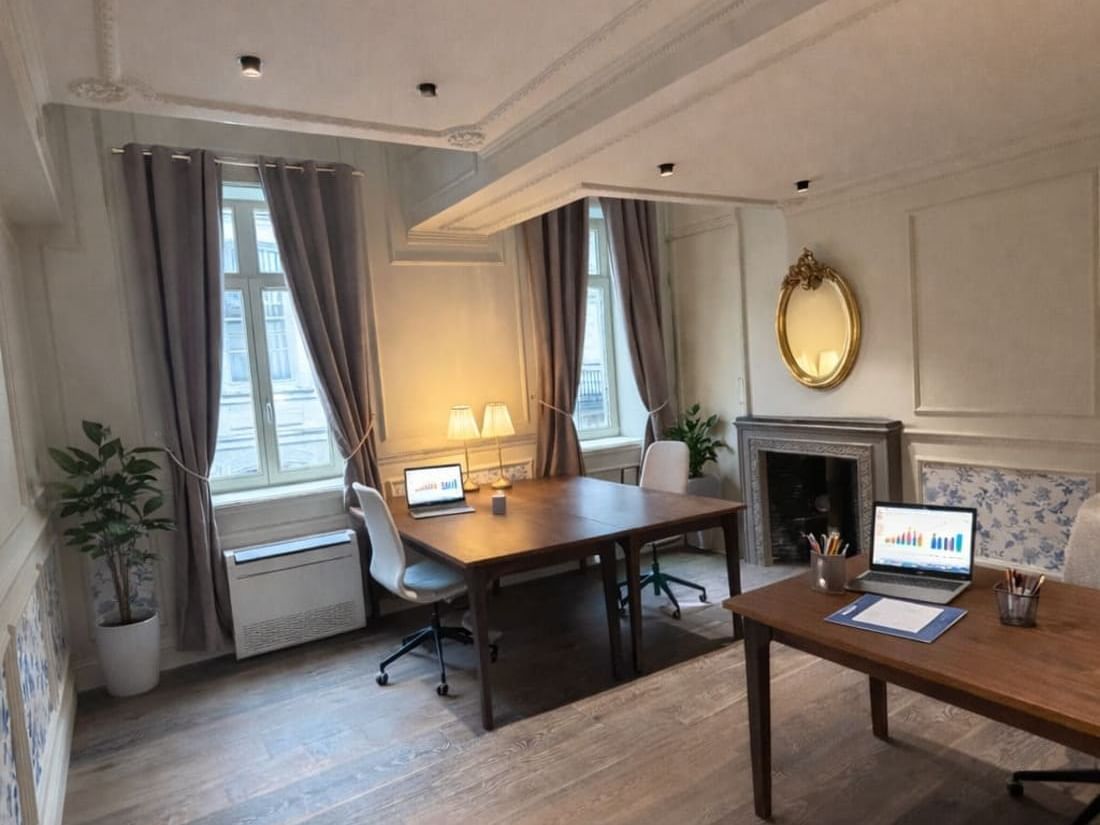 Conceived as a true working residence, La Nef offers warm, elegant spaces blending old-world charm with contemporary comfort: meeting rooms, coworking spaces, work lounges and reception areas.