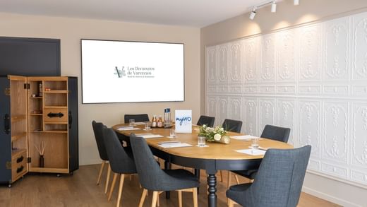 In a quiet, BIG BRIARDE HOUSE-type property, on the first floor of a small business premises, you'll find a meeting/dining room with a large, modular table seating a maximum of 12 people - 6 individual coworking spaces.