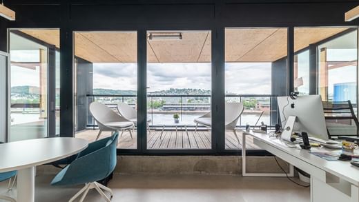 This new 3,600 m2 workplace will include a large social area on the top floor (gaming area, bleacher area, restaurant area, large herbal tea room, terrace), nomadic work environments, meeting rooms and very bright private offices. L'Espace will have approximately 100 offices and more than 150 mobile workstations spread over several floors.