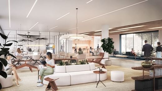 The location on Bretonischer Ring boasts elegant steel-and-glass architecture and plenty of greenery.