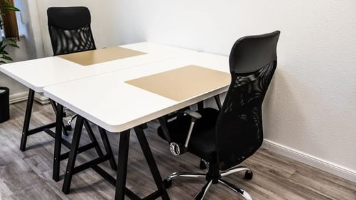 In our coworking space there are several fully equipped rooms with desks, swivel chairs etc. available.