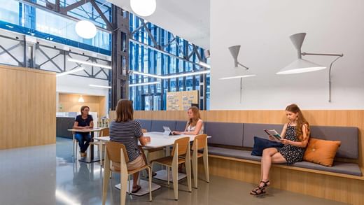 The ground floor lobby is spacious and bright – a theme that continues in the office space, where modern décor meets comfortable furnishings and flexible working areas.