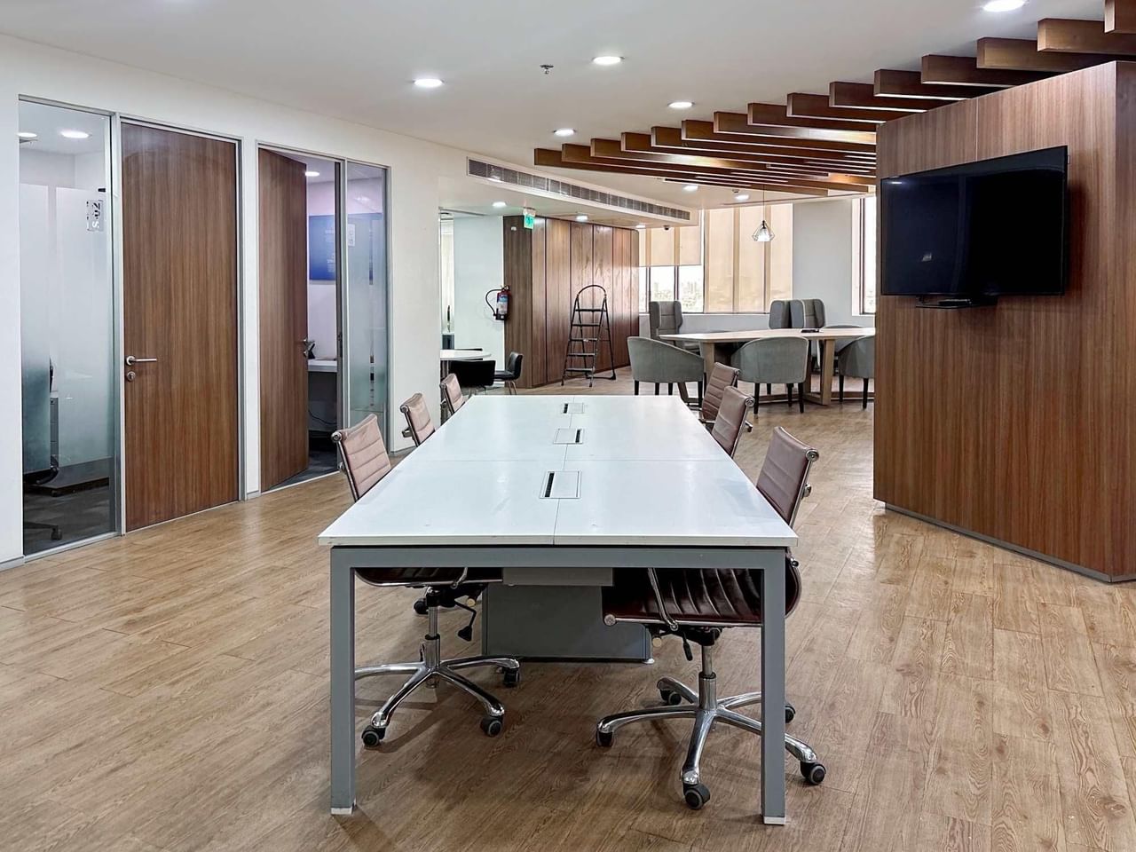 Work in comfort and style at Logix City Centre’s chic wood-furnished offices with warm colours and great views over Noida.