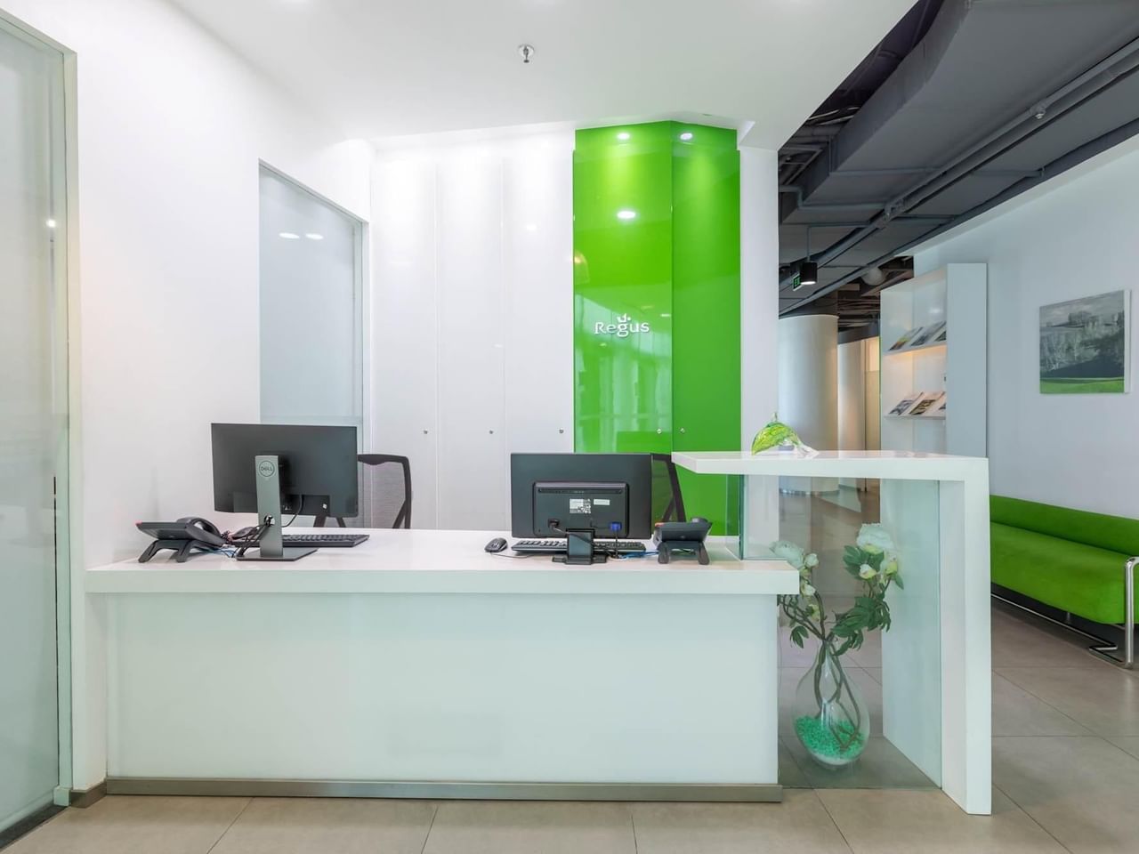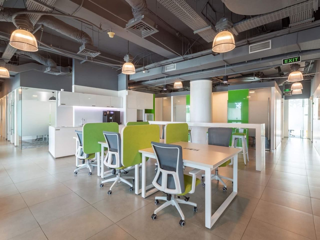 Work productively in the fresh, modern interior, with its airy feel and uplifting bursts of colour.