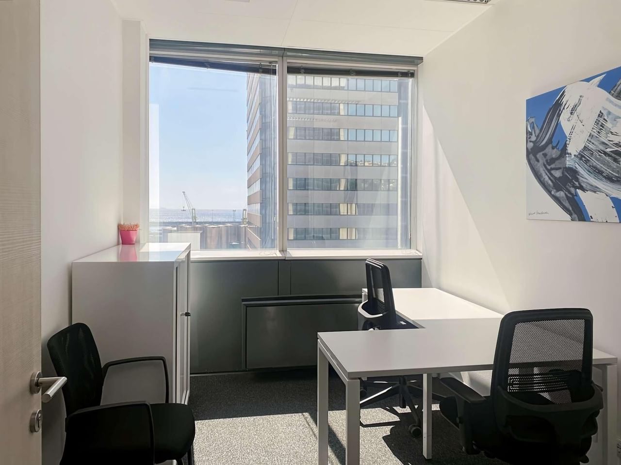 Take in the inspiring views from the eighth floor of this distinctive glass tower, while designer touches and pops of colour create a stylish and energising place to work.