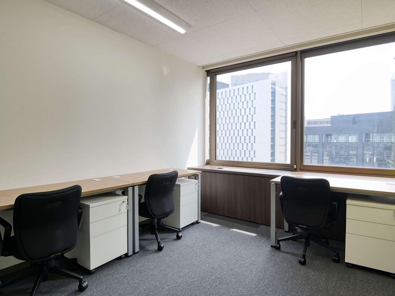 Work productively from naturally lit workspaces designed in a clean, timeless style with ergonomic furniture.