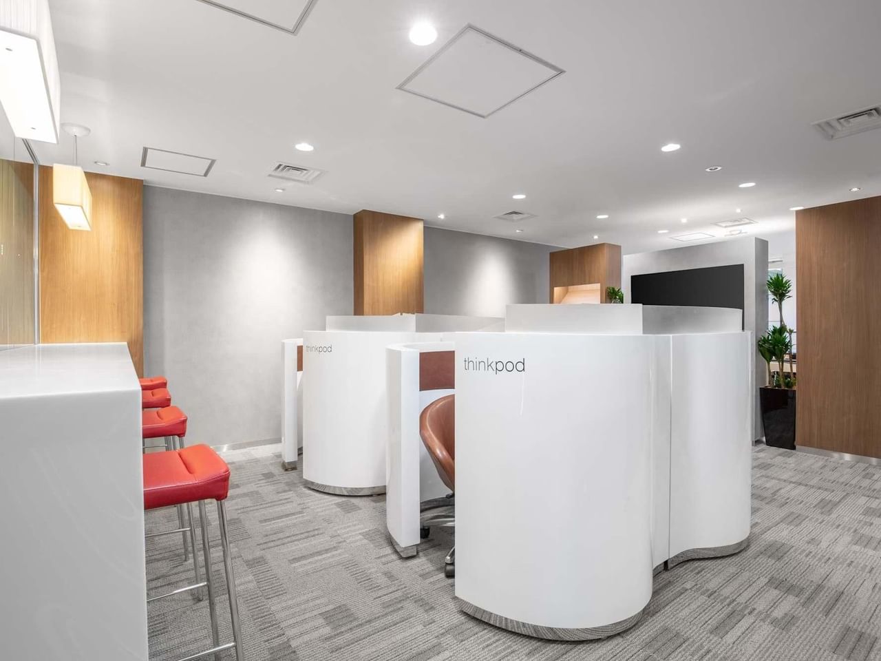 Settle down to focus in calm, muted interiors, where ergonomic furniture and a considered layout make for a productive environment.