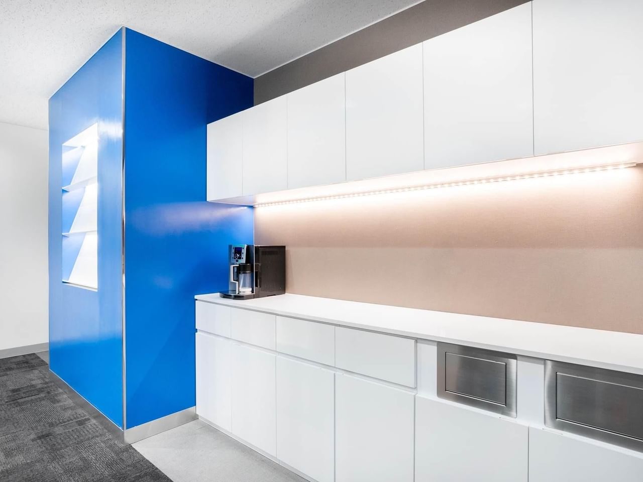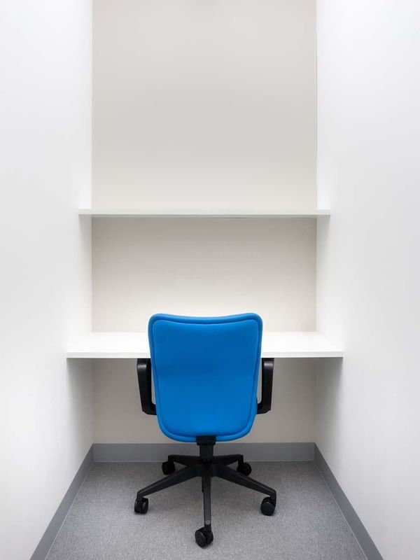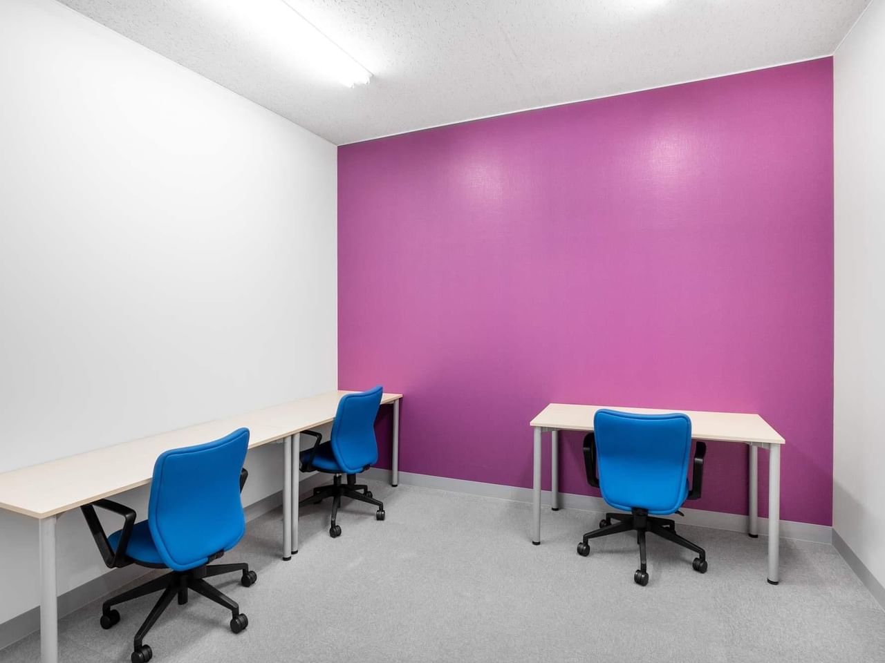 Feel inspired at your desk in a well-lit workspace, vibrantly decorated with pops of colour.