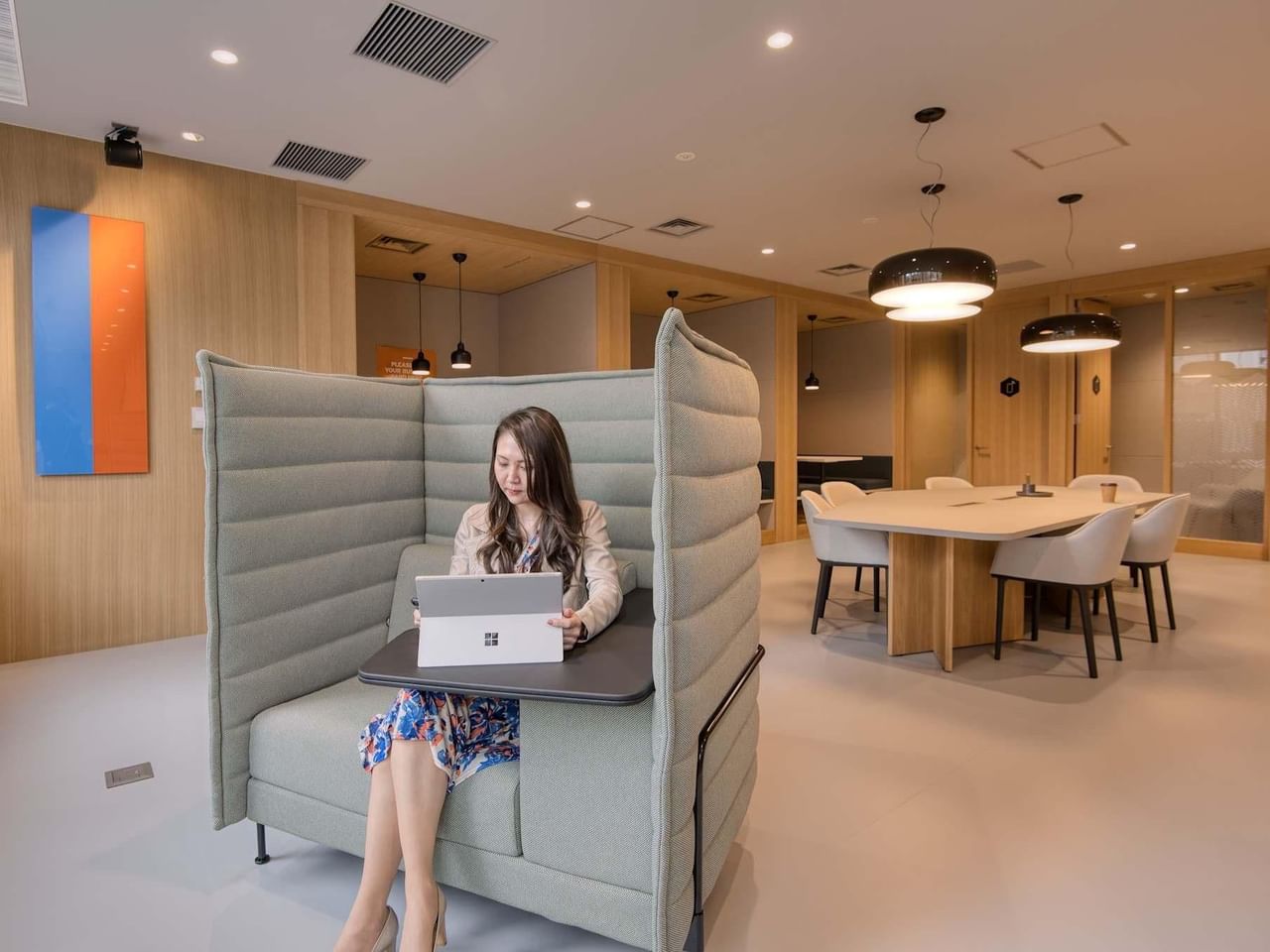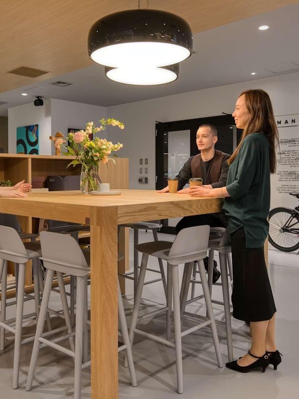 Focus and do great work in airy, open-plan workspaces with ergonomic furniture and thoughtful layouts, and enjoy the chance to collaborate with experts from other fields over a coffee in the relaxed breakout area.