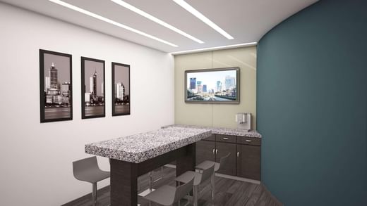 After work, find everything you need to thrive professionally and personally in this modern mixed-use building featuring shops, restaurants, fitness facilities and apartments.