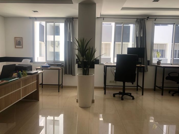 workin.space accompanies you with a local expert to rent an equipped office in Casablanca in 2025: furniture, Wi-Fi, printers, reception, meeting rooms. All spaces are ready to use and available with no agency fees.