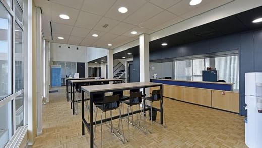 Choose the workplace that's right for you. A sit-stand desk and a good office chair or a seat at the big (bowling) table. You get in and out easily with your personal door code. There's always coffee and tea, which makes sense. Make the L'Espace work space your home.