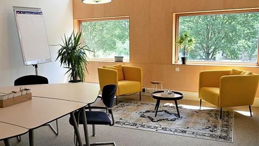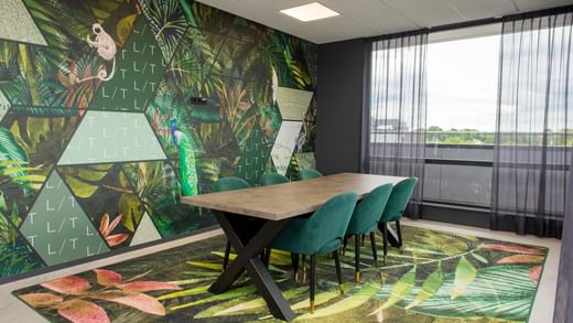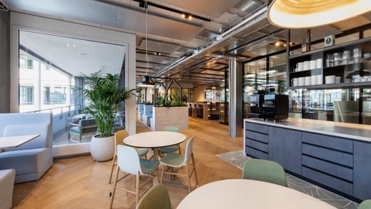 Be focused and productive in airy workspaces with stone floors, stylish decor and large windows offering plenty of natural light.