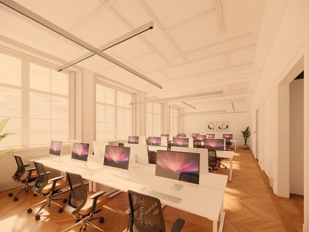 The building is flooded with natural light and finished to the highest standard, creating an inspiring environment for focused work, collaboration, and client hosting.