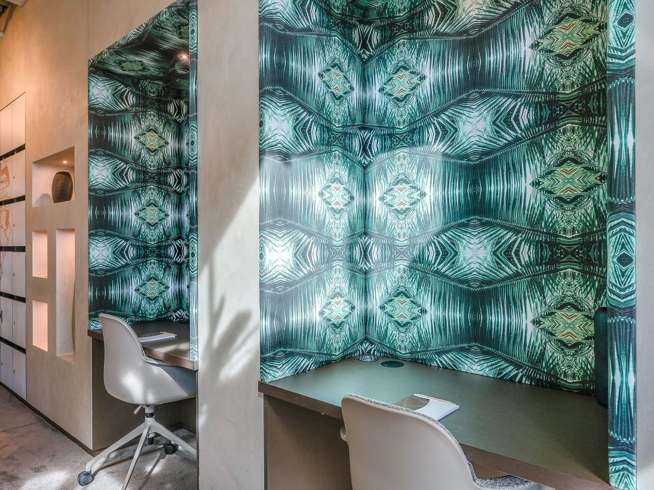 Each workspace interior is inspired by the Secoya tribe, indigenous people from the Amazon Forest. Be inspired by the hidden treasures, the beautiful rituals and the fantastic images during your work!