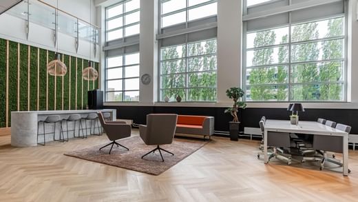 In addition to offices and meeting rooms, the site also houses television studios and an event center. Office space for rent ranges from approximately 35 m2 to approximately 6,500 m2.