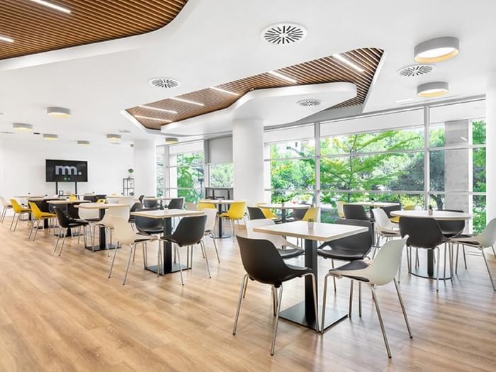 - Ultra-connectedcafeteria, terraces and relaxation areas