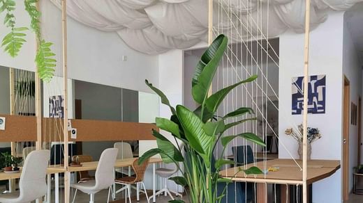DOMA’s Coworking Lounge is an open, quiet space with a minimal, refreshing design that invites focus.