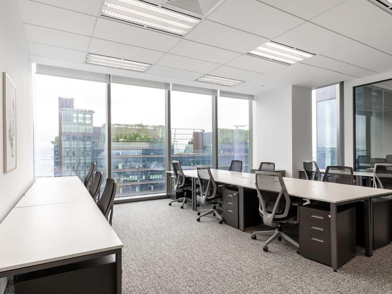 With floor-to-ceiling windows, the light and airy offices offer an inspiring work environment complemented by the outside seating terrace.