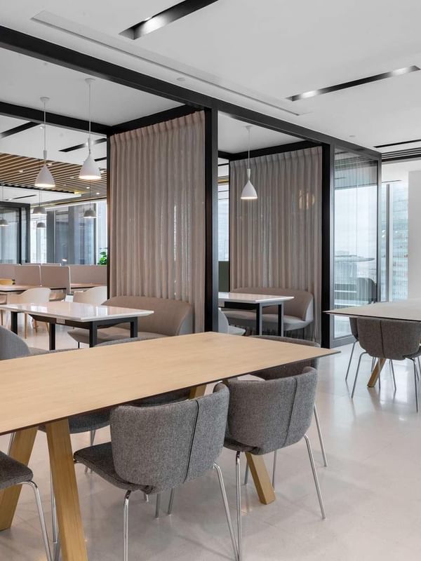 Enjoy an inspiring welcome in the building's enormous lobby before taking the high speed lift to our 43rd-floor workspace.