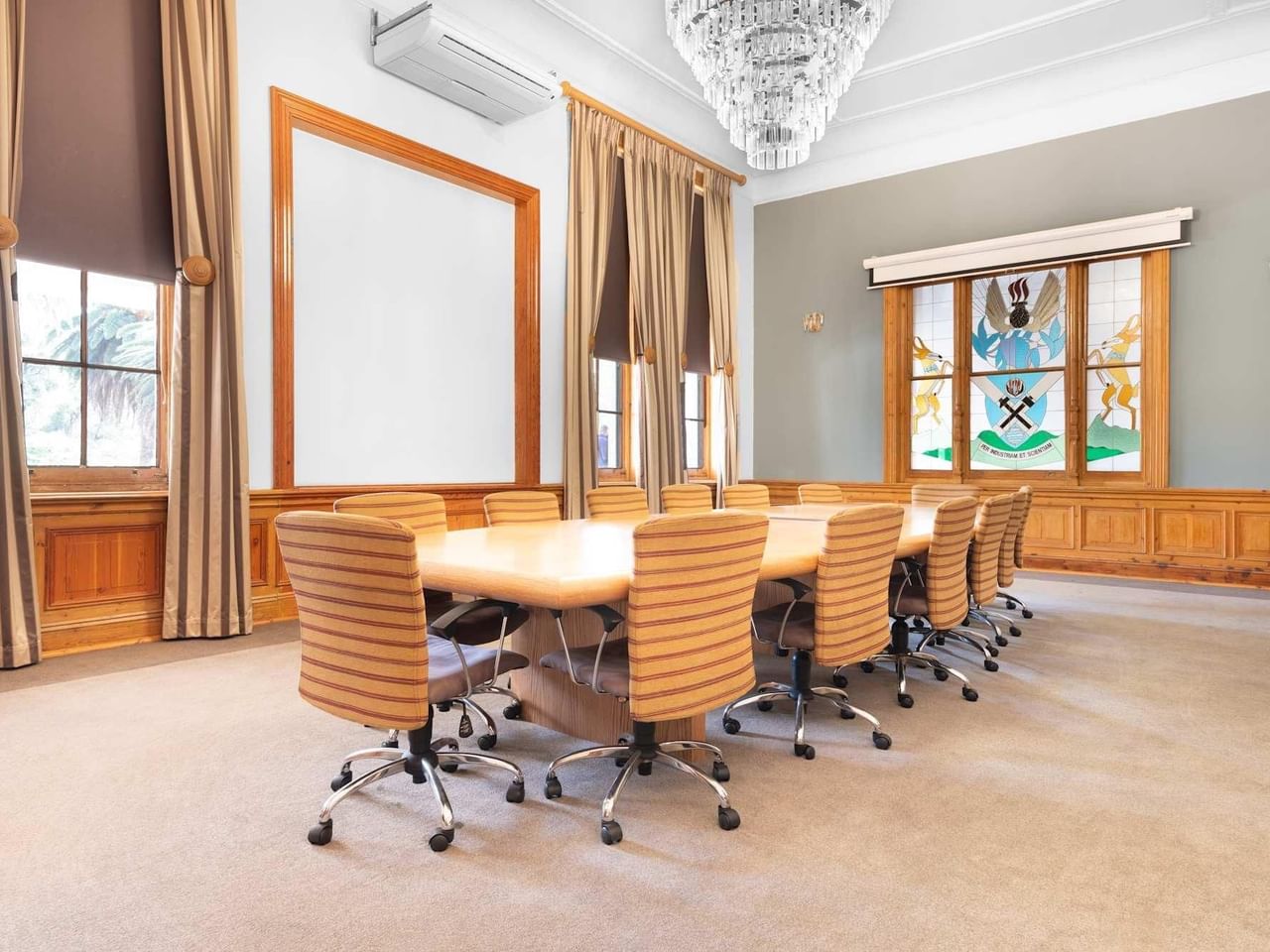 Spark creativity in the conference room under a striking stained-glassed window and enjoy the views with colleagues from the outdoor terrace.