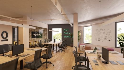 A unique ecosystem of work and meeting space. Thanks to its design and structure, it offers an ideal environment for a work in the work area. Both for flexible positions, permanent or own offices. As well as closed rooms for meetings and common areas for visits and meetings.