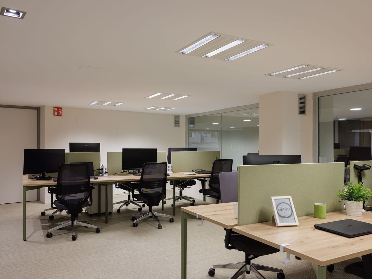 Work in a modern and dynamic space. We are a coworking in the center of Seville, we have more than 300 square meters, among which is our Open Space with 37 work desks, two meeting rooms, private offices, event room and shared spaces such as our reception, call booth and terrace in the center of Seville.