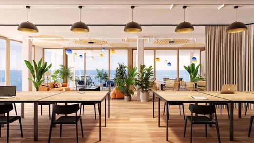 Work your way with a stunning view at Barceloneta, where expansive windows fill every space with natural light to keep ideas flowing.