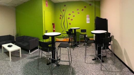 There is an area on the first floor, with a kitchen office equipped with microphones, a cafeteria and a bar, so you can relax, chat and create sincerity.
