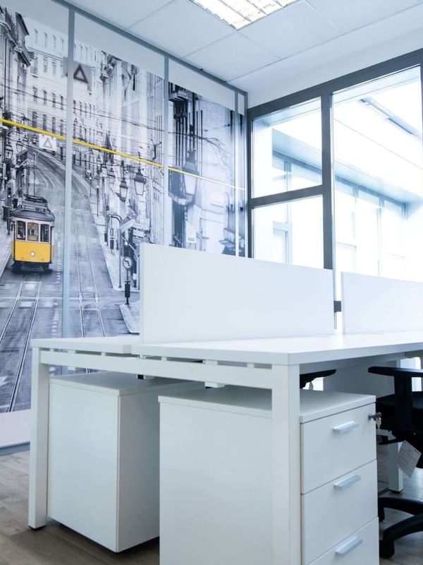 That is our coworking workspace in Madrid, where you have private offices for you or your small business, individual workstations, and shared spaces to rest and share experiences.