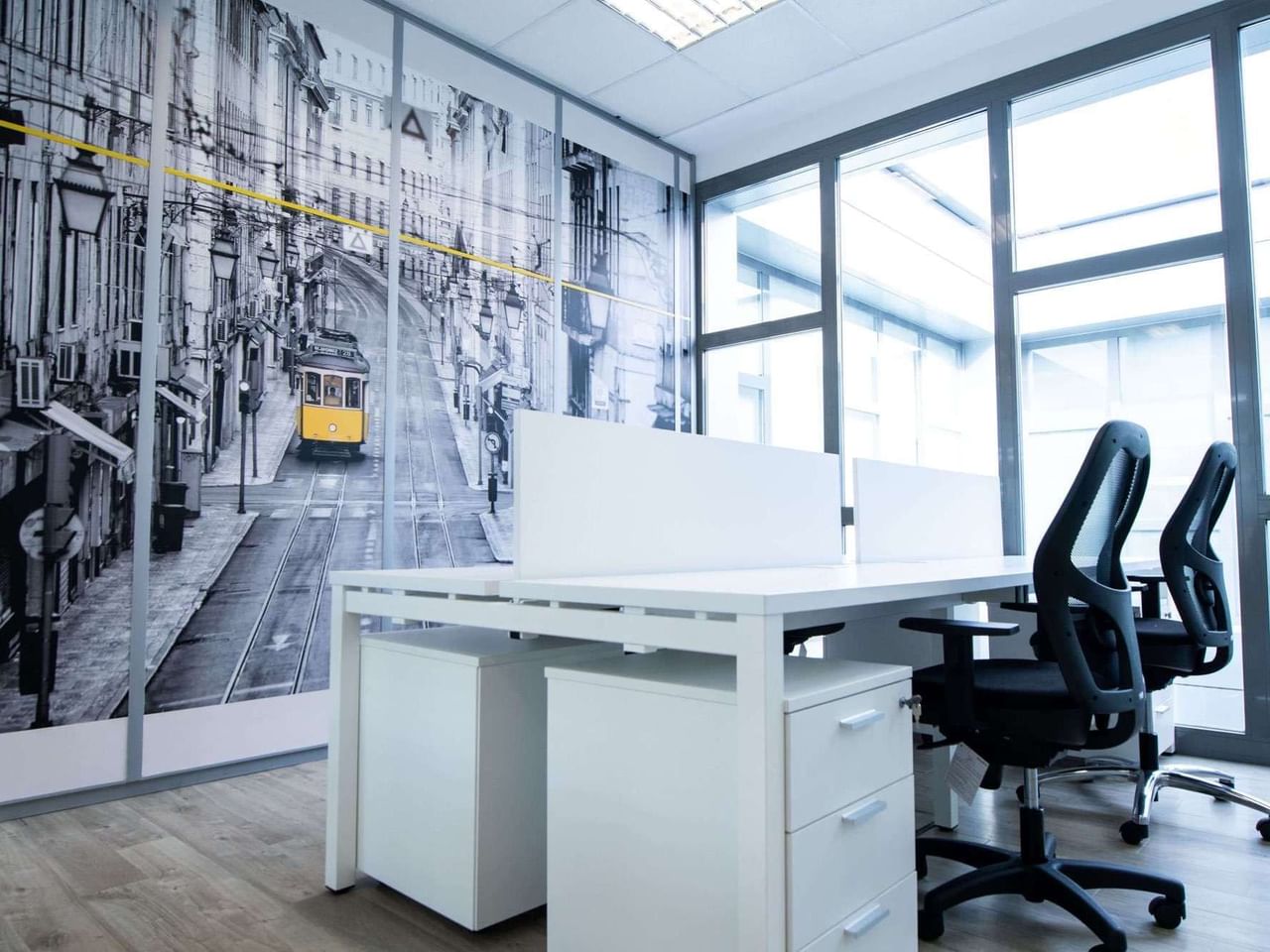 Flexible workspace in Madrid with large windows in all rooms and terrace, located behind the Ramón y Cajal hospital and very well connected.
