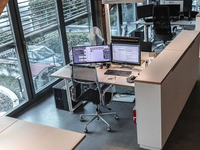 - Price for a monthly workstation in a private office: Fr. 365 excluding charges / month
