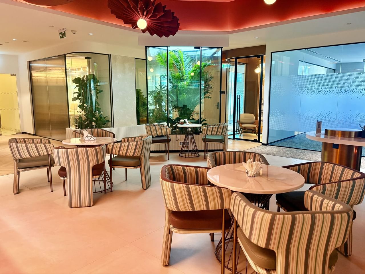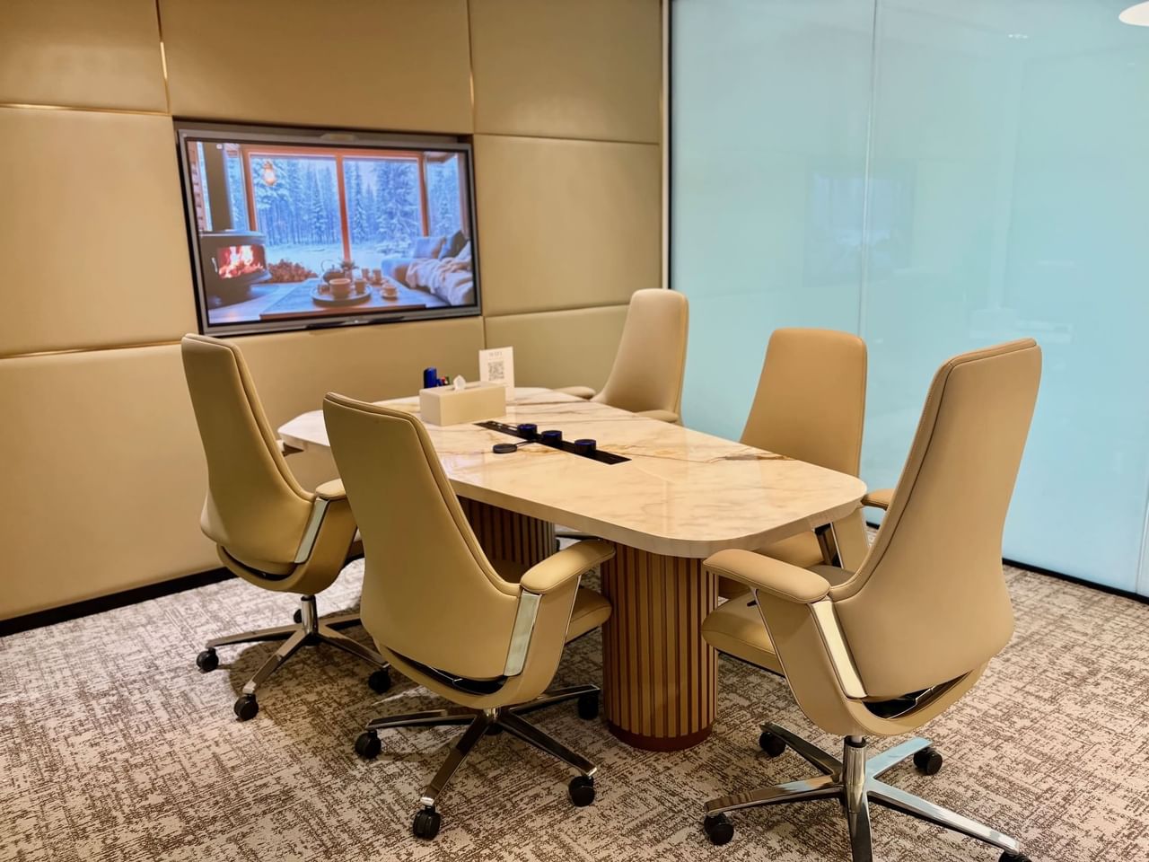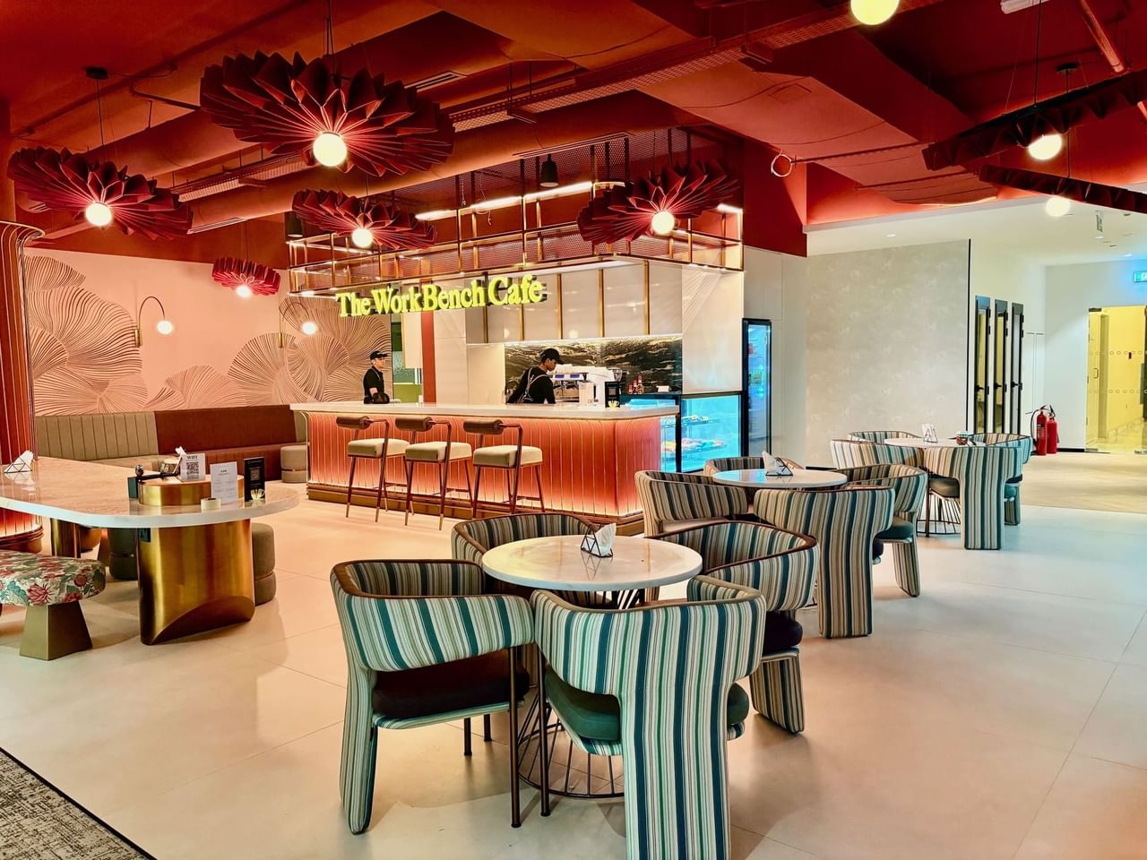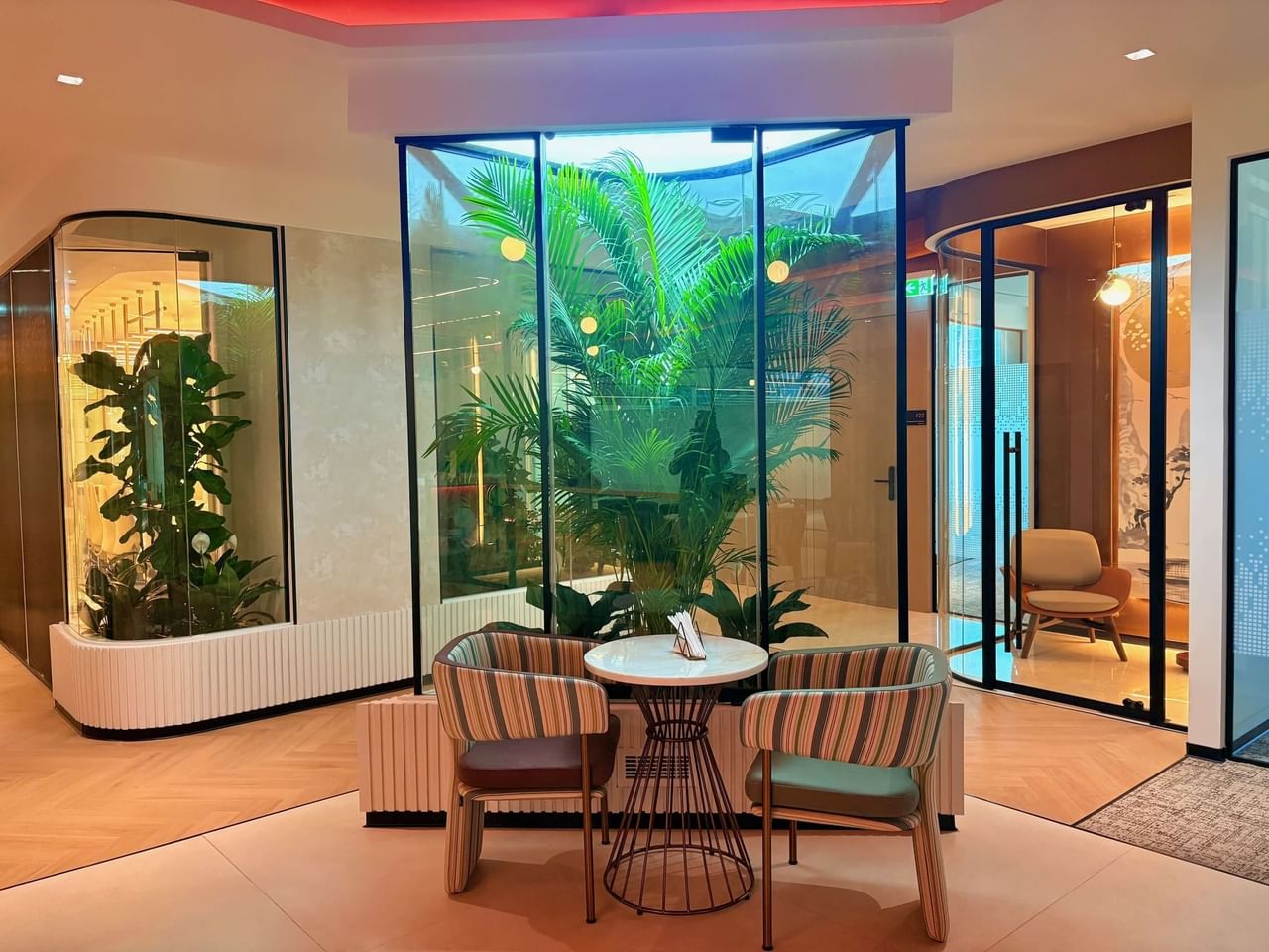 The center also includes: in-house coffeeshop with a private barista and a selection of premium coffee beans, wellness zone equipped with a treadmill, an exercise bike, and a massage chair, soundproof phone booths for private calls, meeting rooms for 5–15 people, fully equipped with the latest tech.