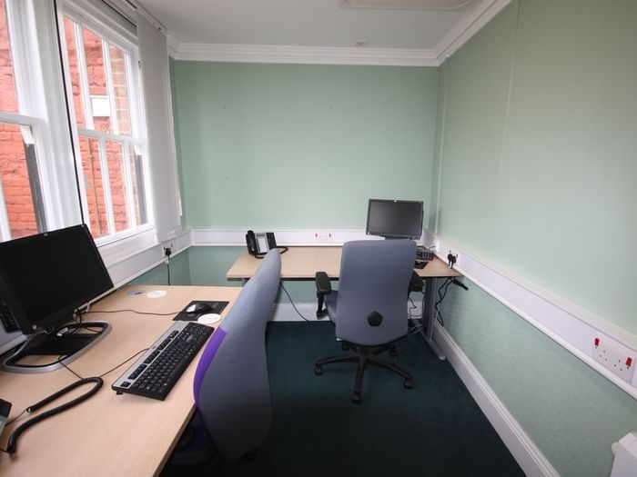 - Price for a monthly workstation in a private office: GBP £ 165 excluding charges / month