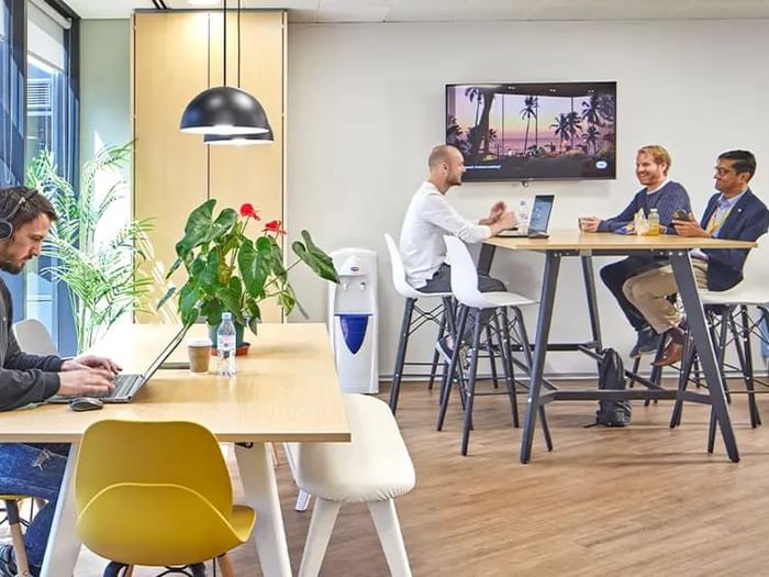 - Price for a monthly workstation in a private office: GBP £ 79 excluding charges / month