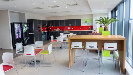 Landscaped gardens with tables and chairs to the rear promote wellbeing, offering people the opportunity to enjoy lunch outside on the south-facing patio.