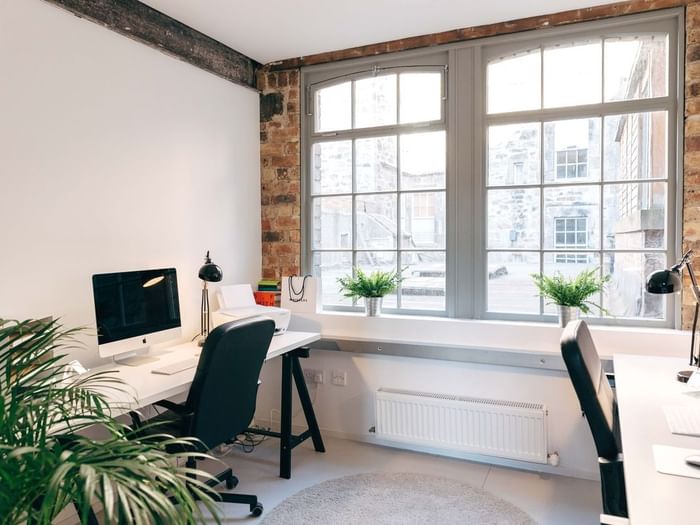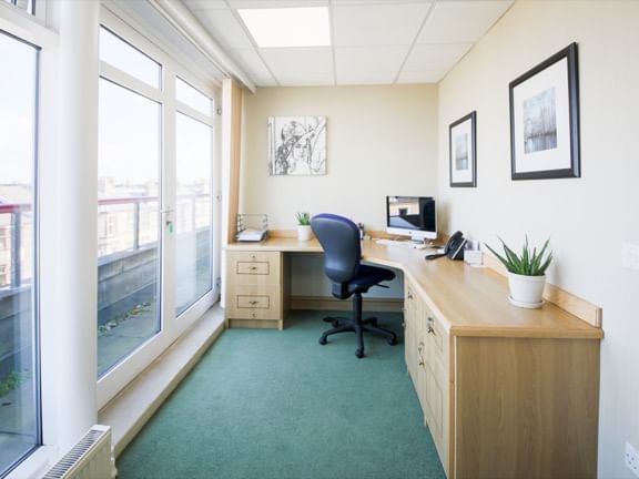 - Price for a monthly workstation in a private office: GBP £ 125 excluding charges / month