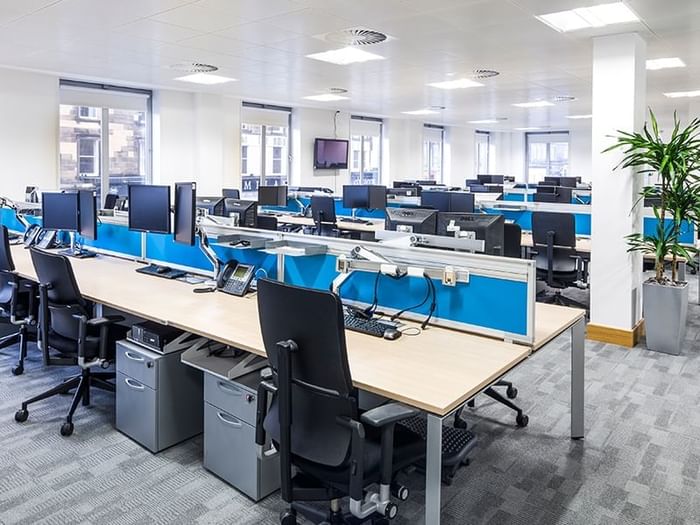 workin.space accompanies you with a local expert to rent an equipped office in Edinburgh in 2025: furniture, Wi-Fi, printers, reception, meeting rooms. All spaces are ready to use and available with no agency fees.