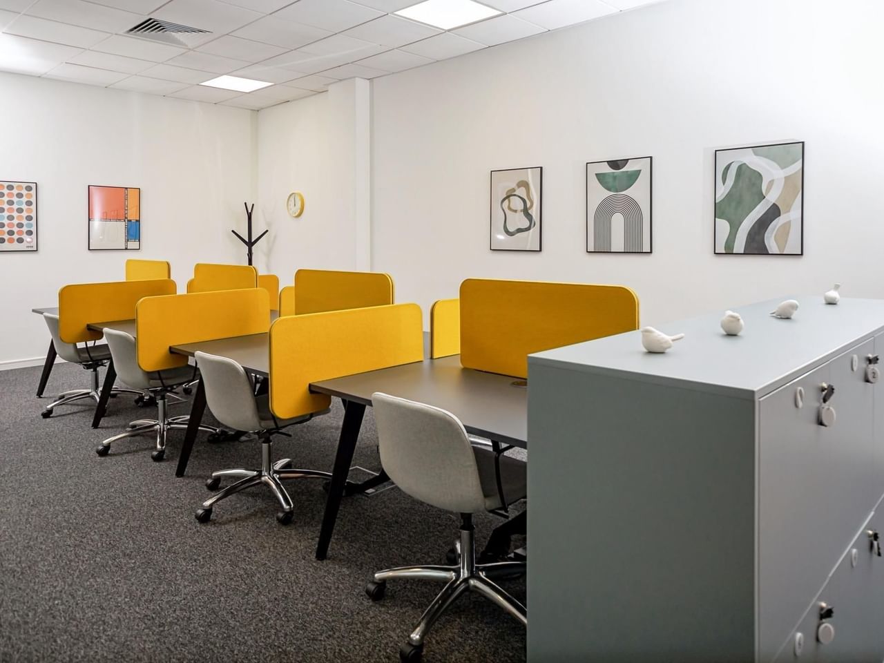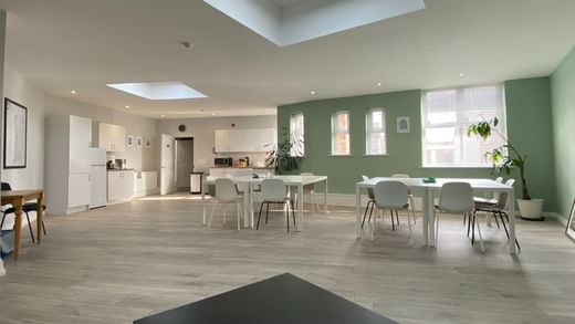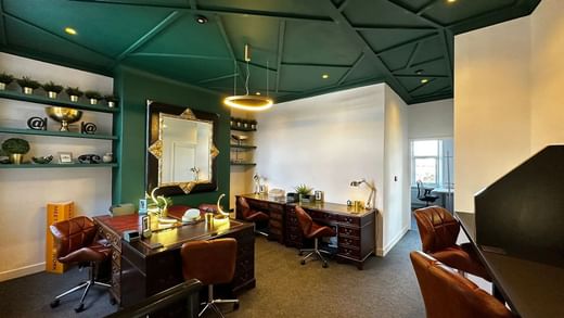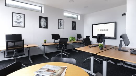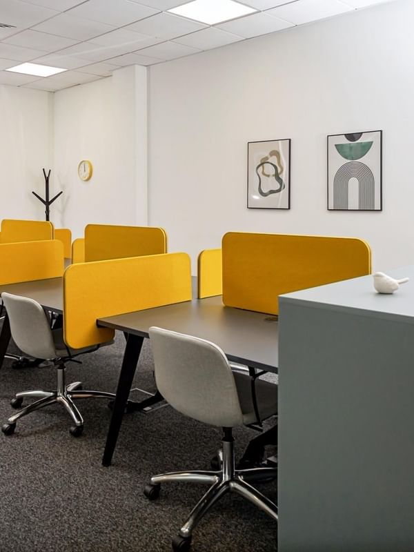 Work in open plan offices with superfast WiFi and private meeting rooms for business gatherings.