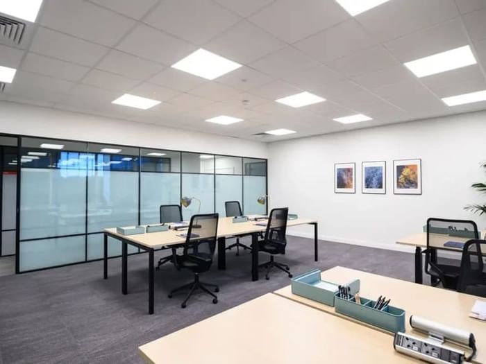 - Price for a monthly workstation in a private office: GBP £ 175 excluding charges / month