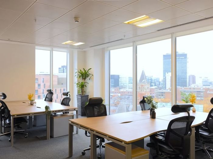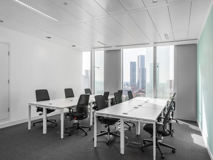 workin.space accompanies you with a local expert to rent an equipped office in Manchester in 2025: furniture, Wi-Fi, printers, reception, meeting rooms. All spaces are ready to use and available with no agency fees.