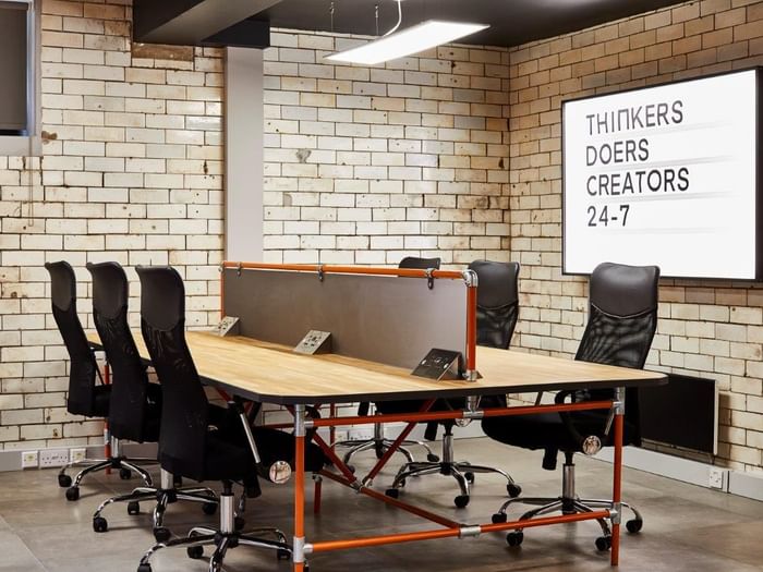 - Price for a monthly workstation in a private office: GBP £ 145 excluding charges / month